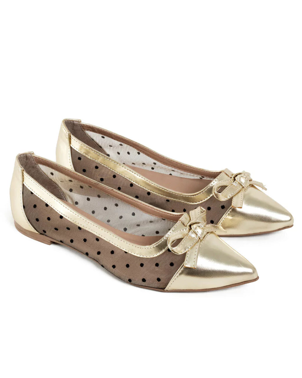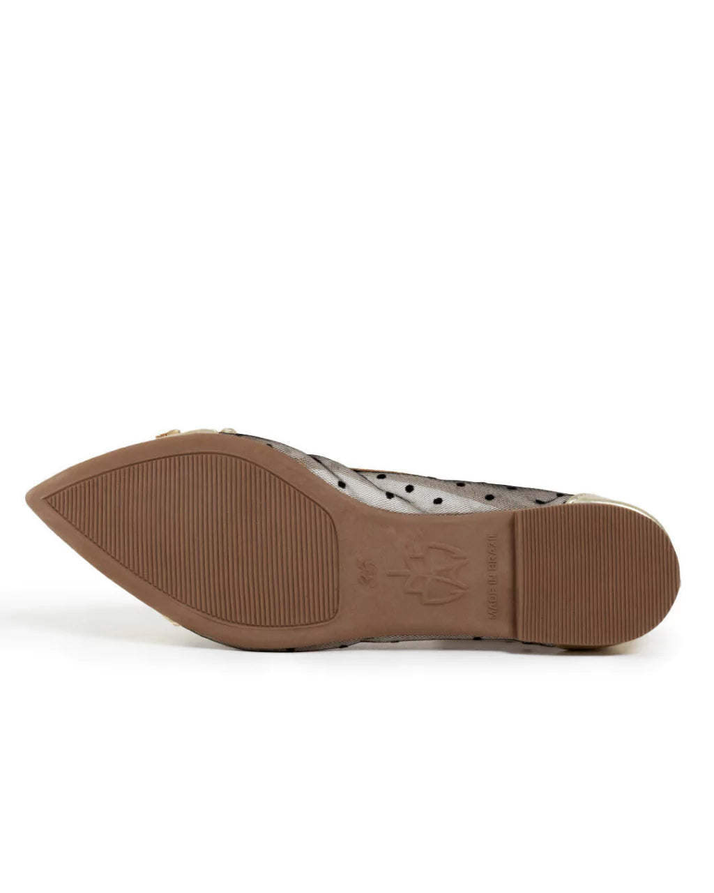 Descubra o equilíbrio perfeito entre conforto e estilo com nossa Sapatilha Napa Ouro Tule.